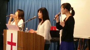 牧師賛美、萱野さんが導いています。