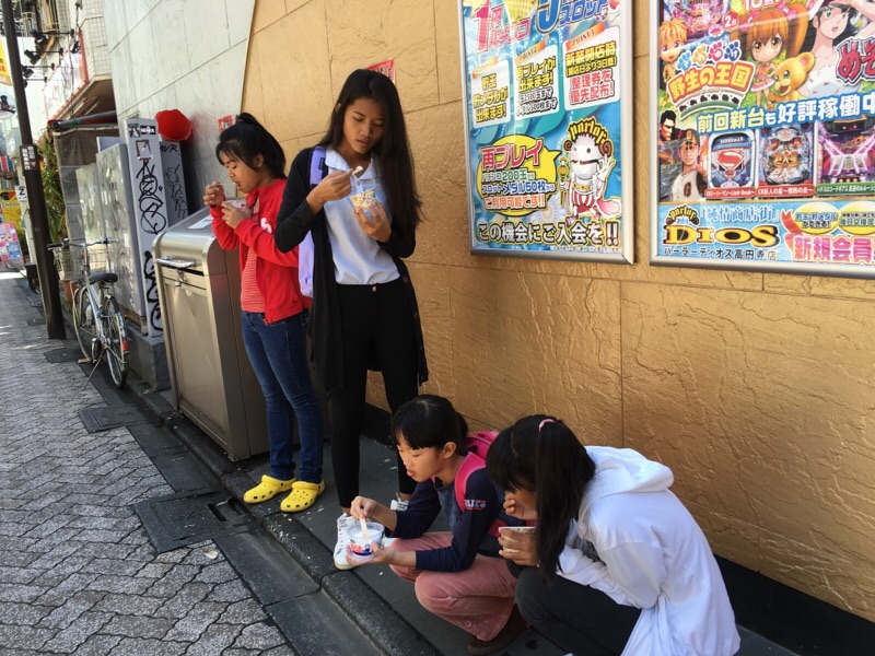 昨日と違って、朝から暑くなりました。 そこで、朝からアイス! 座り込むのが、カンボジア風?! Ruth