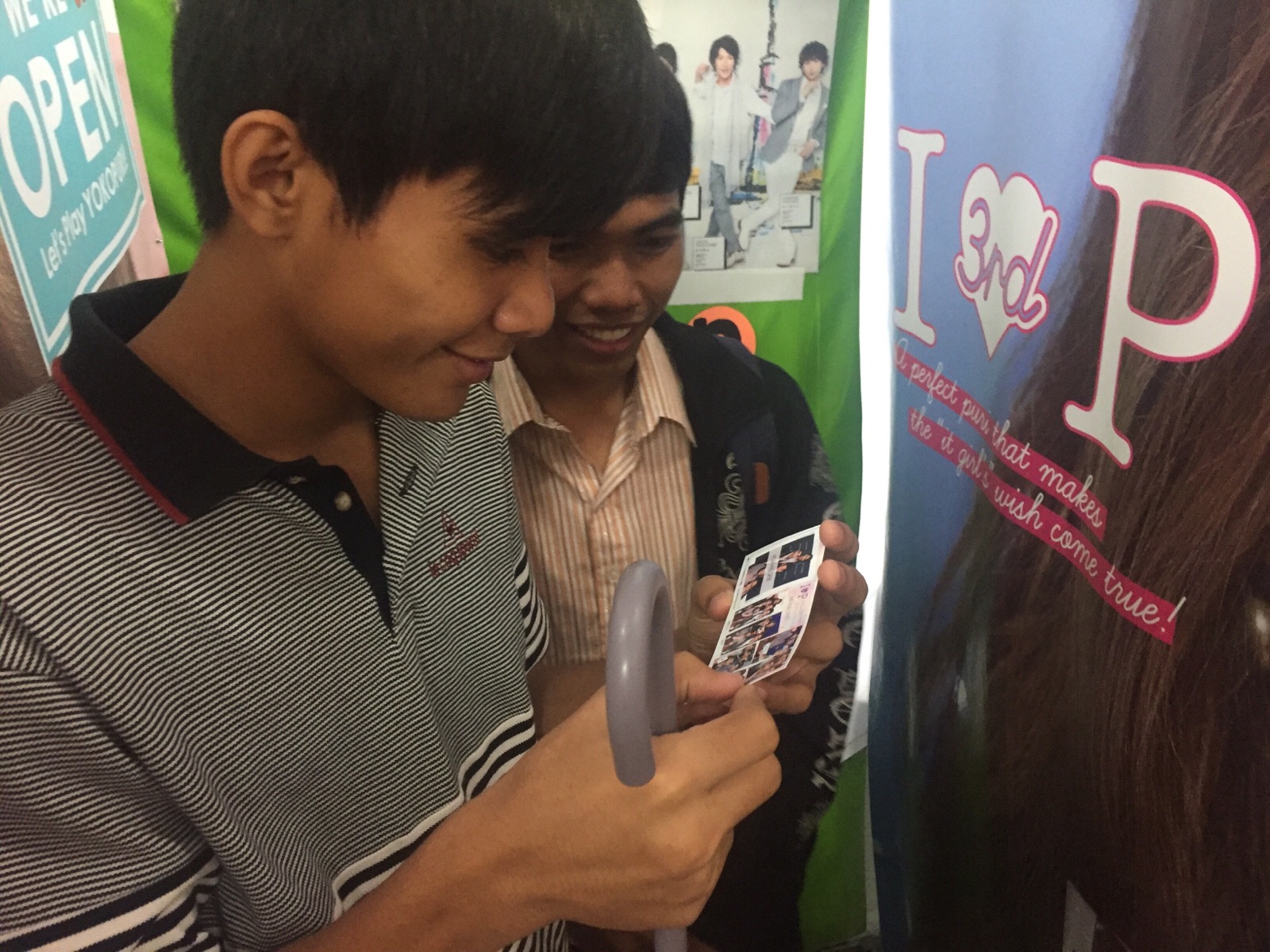 真剣な表情でプリクラを撮ってます! 光くん、操作、慣れているようです! peter