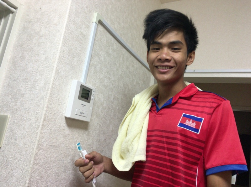 シェアハウスでは、今井さんが用意してくださったカンボジア語の本が役立っています! peter