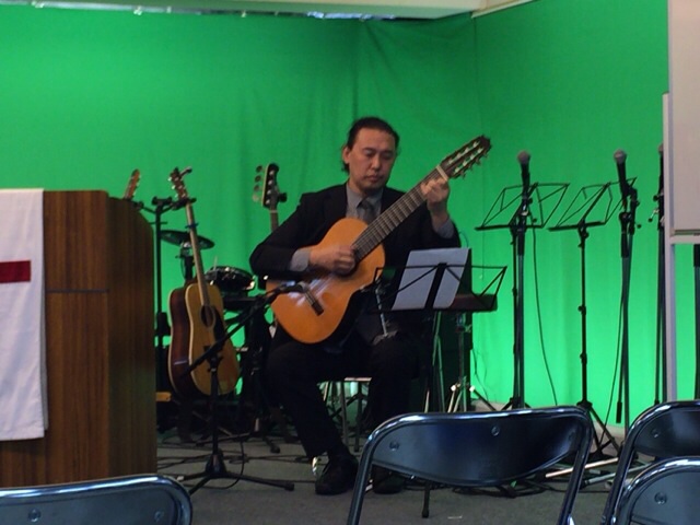 池田さんのクラシックギターでの特別賛美。 曲は、エルサレムの平和のために祈れです。