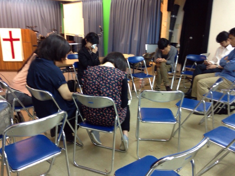 台湾チームに行くラスポーザ 榊さん&佐登子さん 今日のお昼の時間にお祈りされていました。