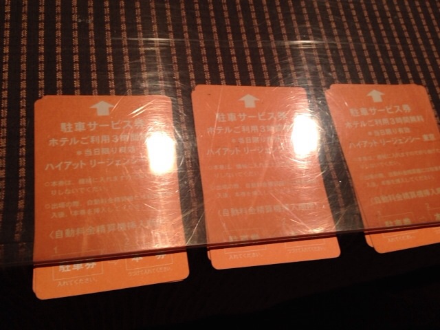ハイアットリージェンシーの駐車券、ご用意あります。