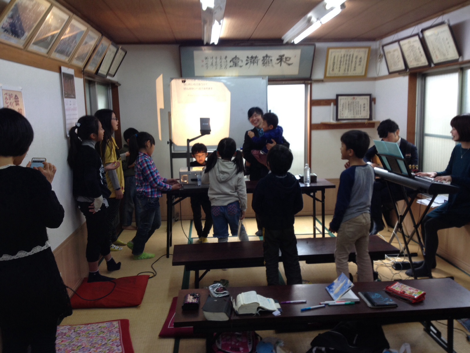 後半賛美。 お兄ちゃんは、弟をおんぶで賛美。