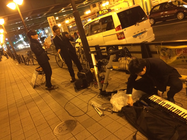 路上ライブ終わっておかたずけしています。 CDも売れ、こころごすぺるコンサートに来るかもということです。
