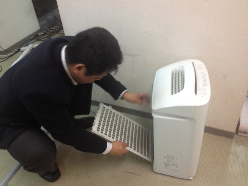 益川さんが空気清浄機をチェックしてくれています!