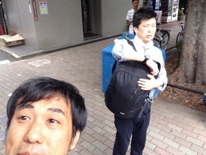 サムエルさん、到着です。 ダビデくんの車待ちです。