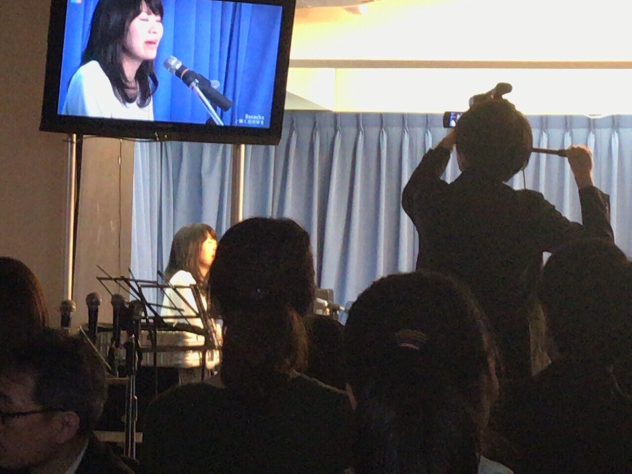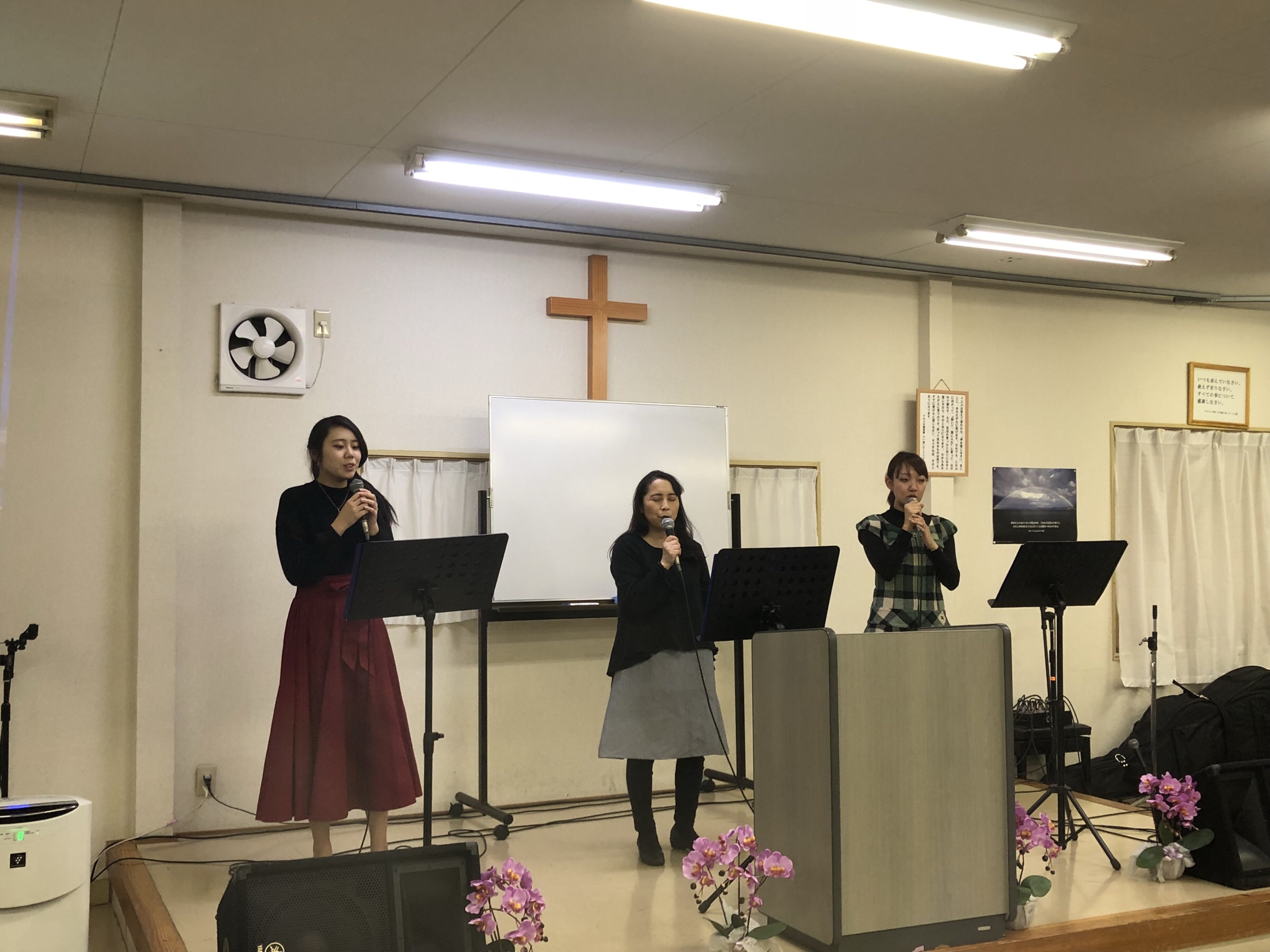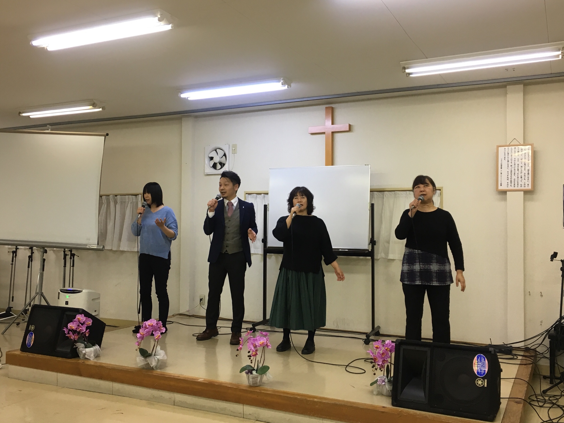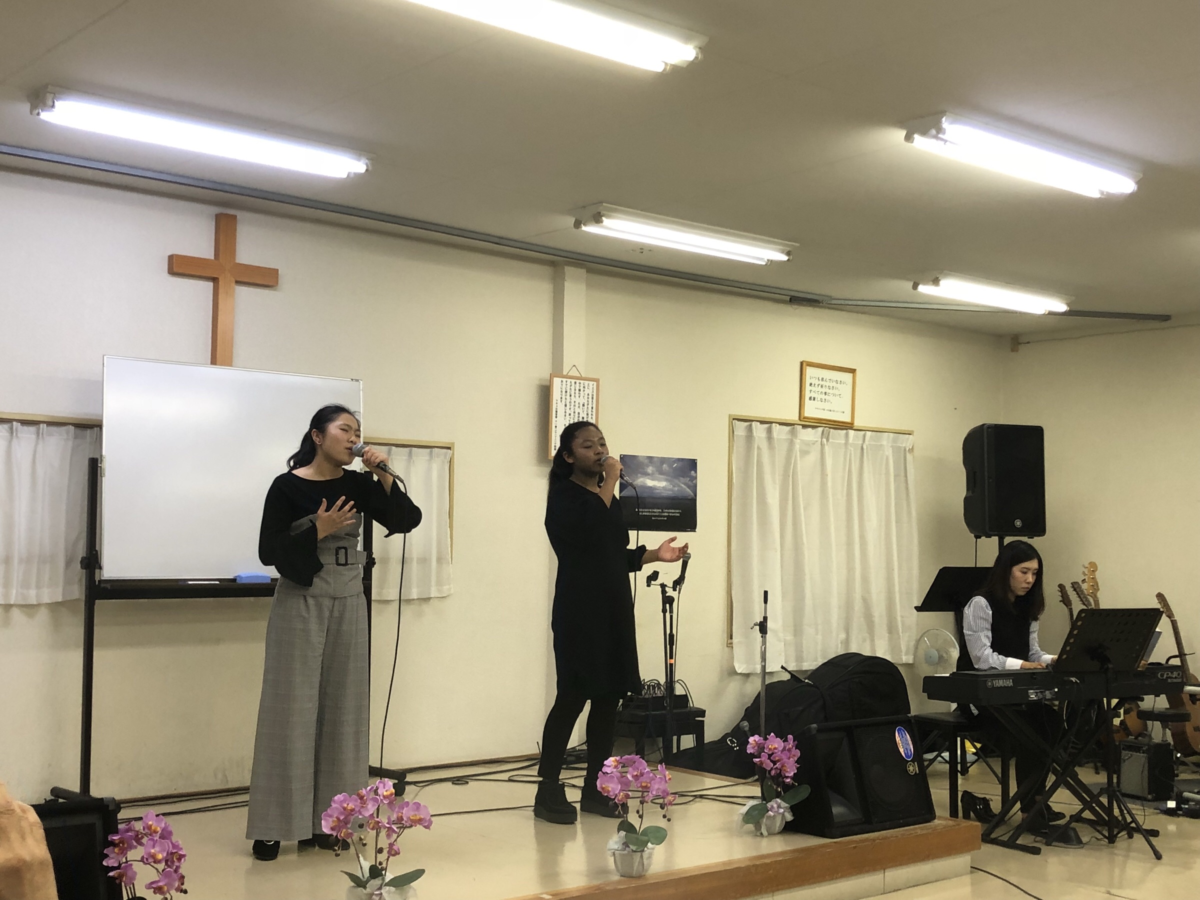 特別賛美の時です。ほめ歌で「君を守るから」、KISEKI NO TOBIRAで「ラッキーガール〜幸せな人」を賛美しています。