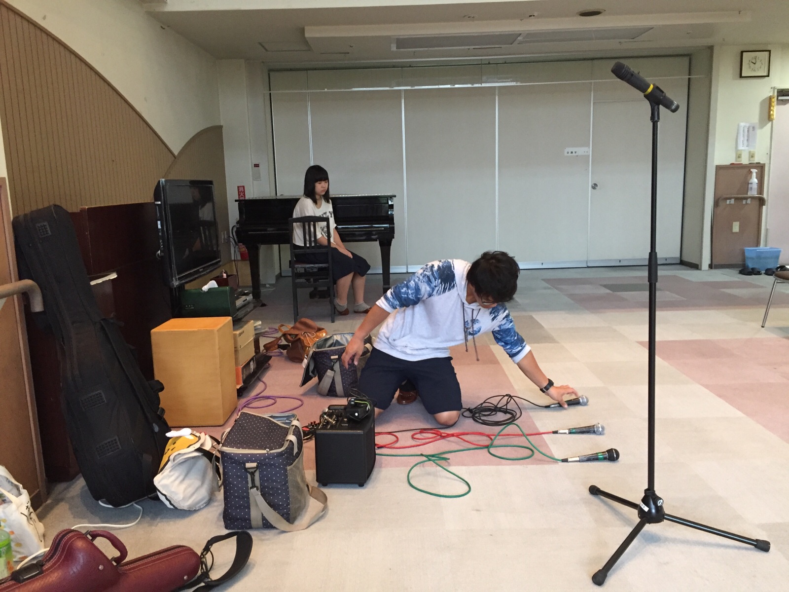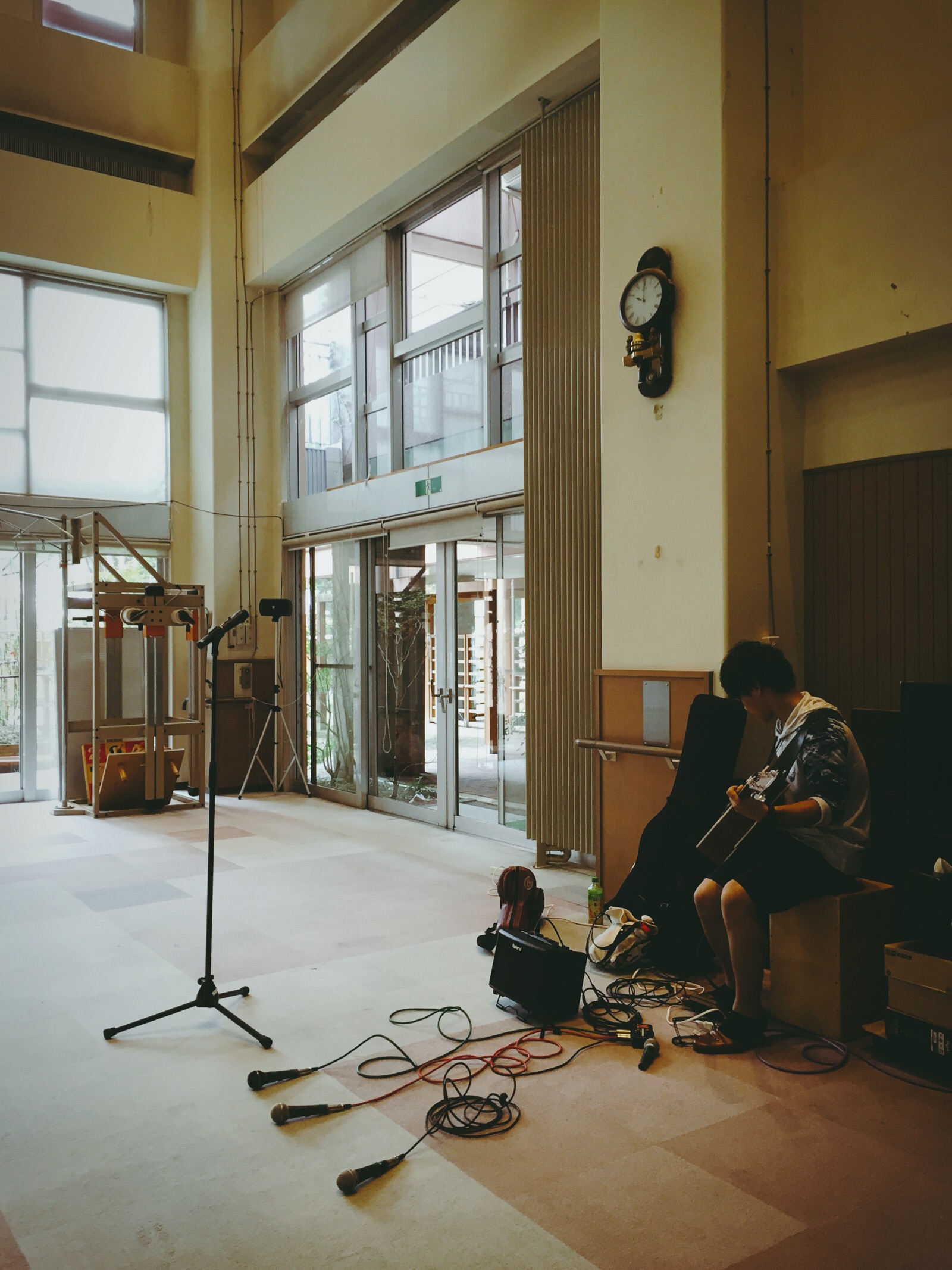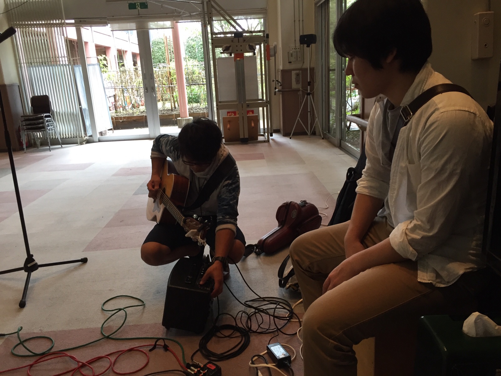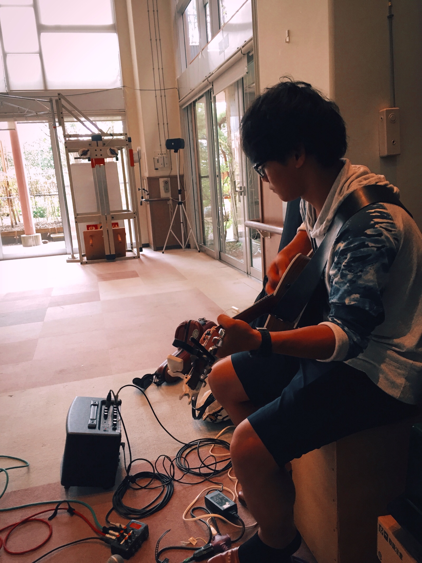セッティングが完了してサムはギターを弾いて待機中*\(^o^)/* Israel
