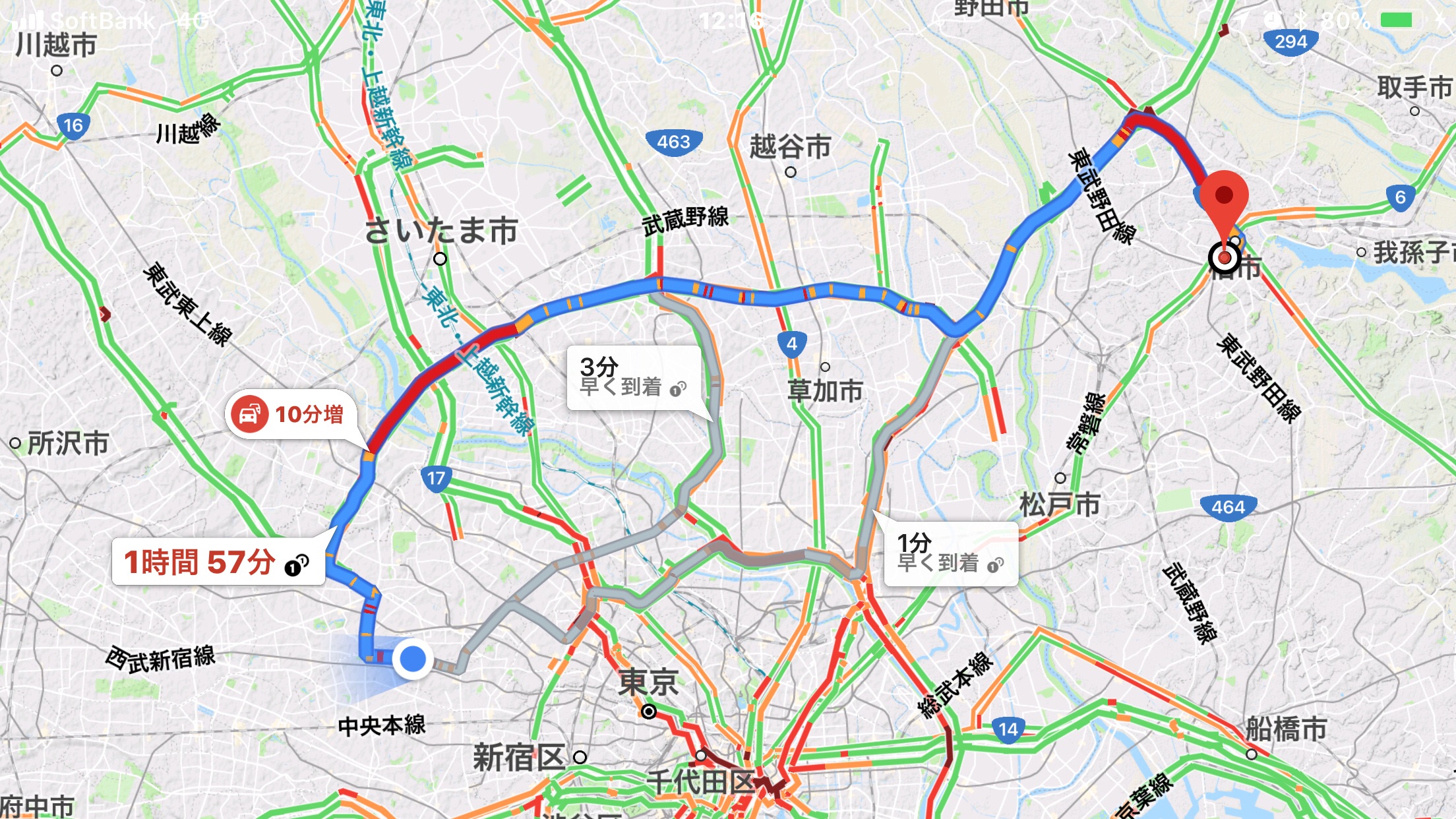 この先渋滞があるようで、下道に変更します。 ハンナ