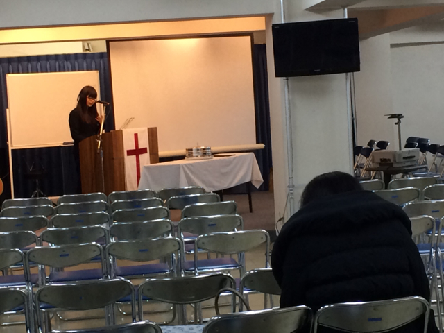会堂では水曜礼拝が行われています。 今、高橋さんがメッセージをされています。