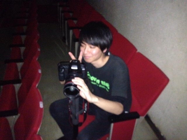 映像祭に向けて、設営、PAの様子を映像で出す予定の駿介くん。