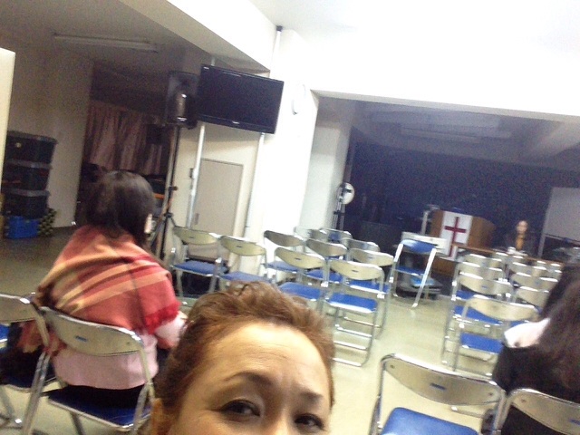 夜の教会では、祈祷会が始まりました。りょうこ牧師が導かれます!