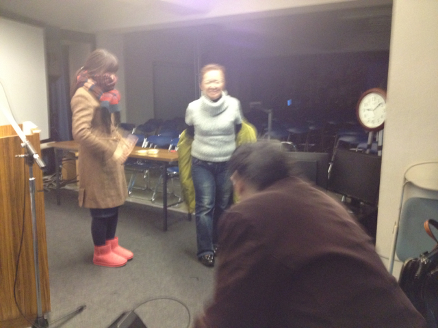 寒い中やって来たのは、エルサレムのお二人と池田さん。