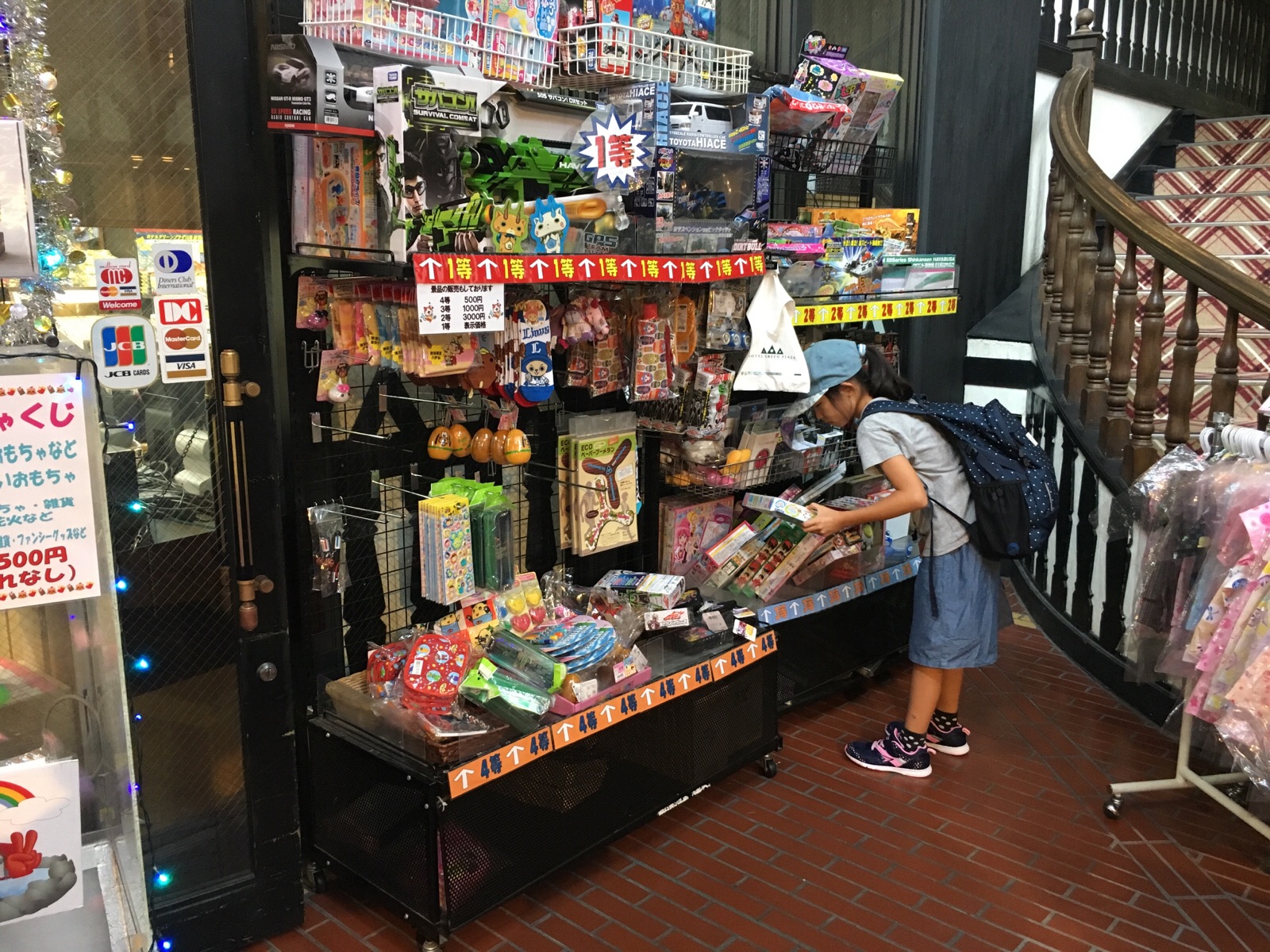 ホテルに到着です。 さっそくおもちゃくじの景品をチェック中! こどもキブツ シオン