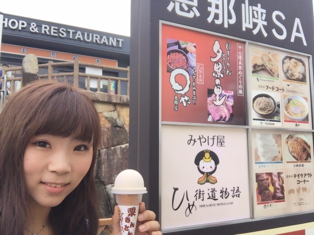恵那峡SAでお昼休憩〜♪ 食後の後のデザートは栗きんとんアイス♪ Believe カナン