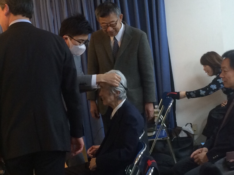 新井先生に、ヘッドセットをつけていただきました。 映像部ひかる