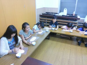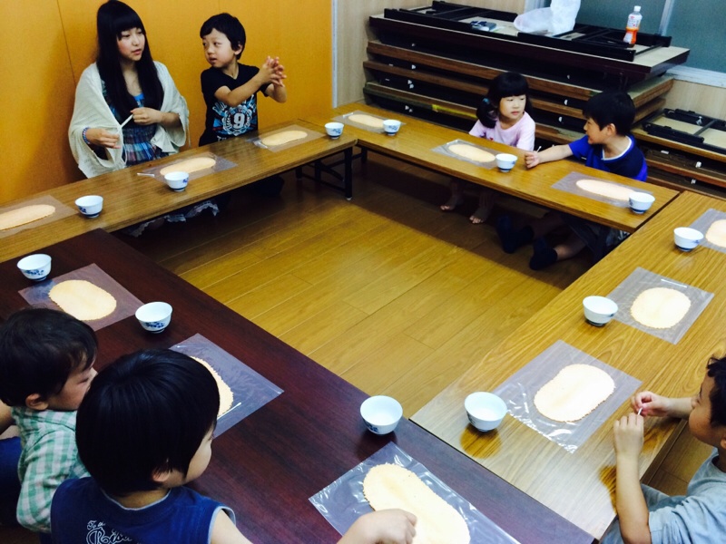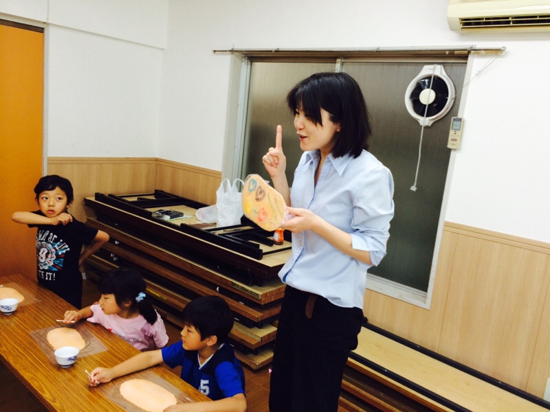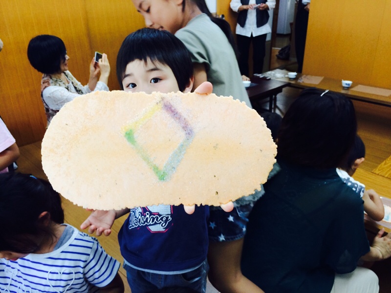 水あめで書いたものの上にお砂糖をふりかけます! CSスタッフ