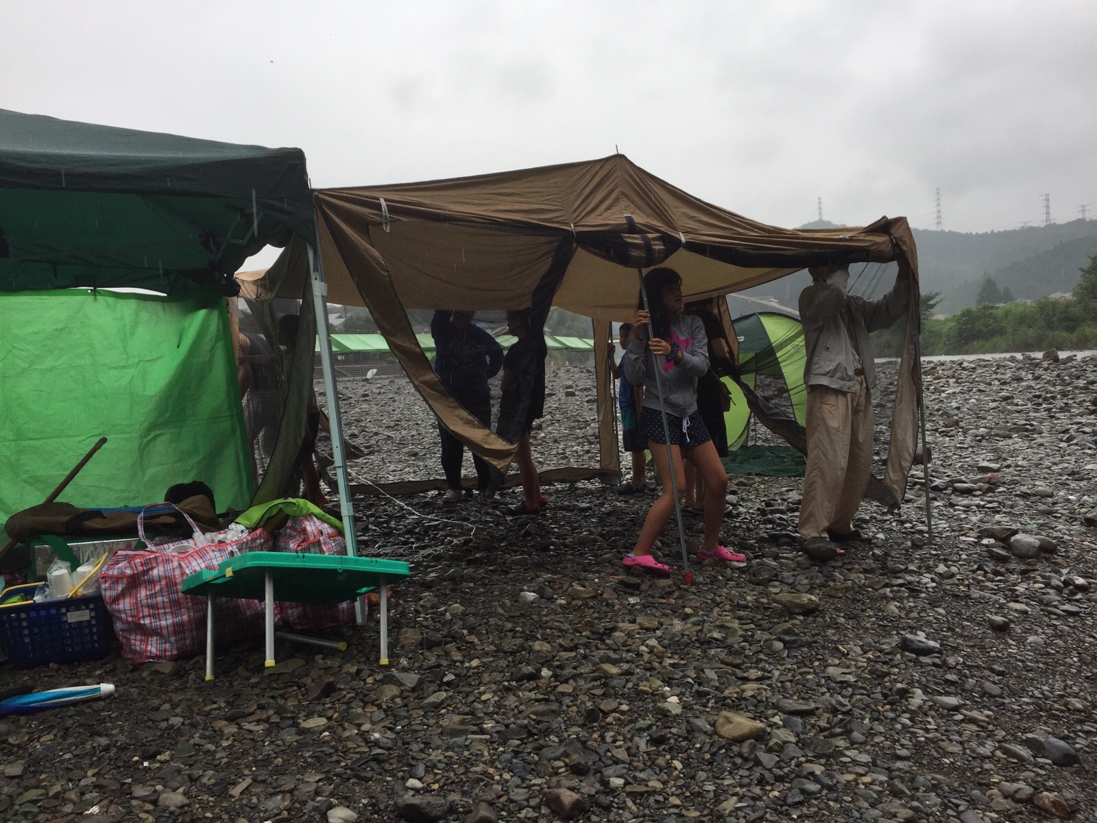 テントが増えて行きます。 子どもたちも大事な助っ人です。 Joy