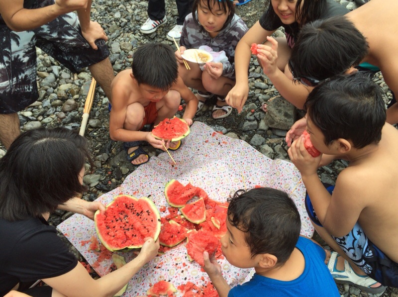 雨は大降りになる事はなく、途中ほぼ上がって、日差しがない分過ごしやすかったです☆ 川の水が冷たかったみたいなので、みんなカゼひきませんように‼︎
