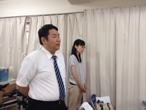 今日の司会の小代さんも誘導係! 避難訓練の時には宜しくお願いします。