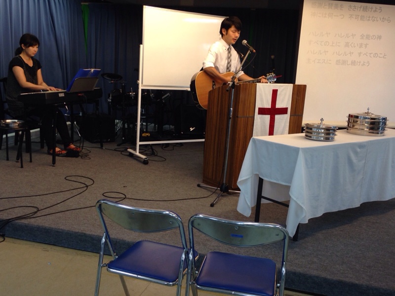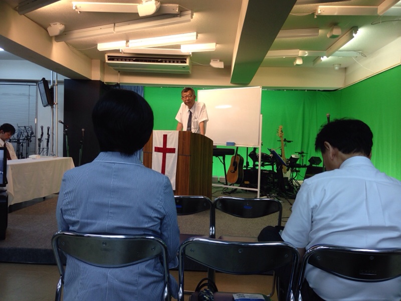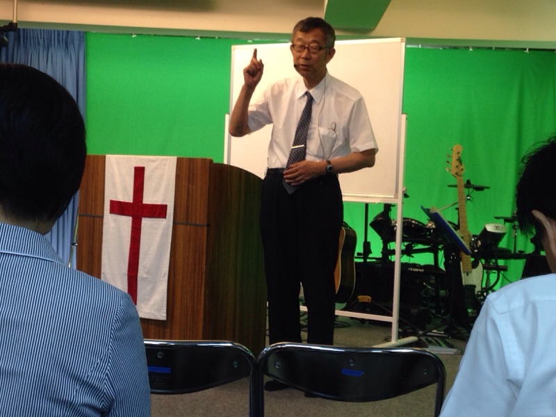 避難訓練担当スタッフの真境名牧師、訓練の時はいろいろなところチェックします。