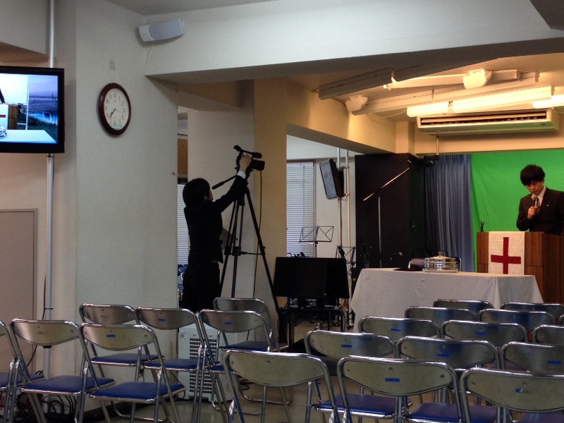 メッセージは牧師の森さん。愛ちゃん、カメラセッティング。