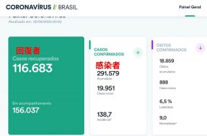 感染者数に対して、回復者数が半分に迫って来ています。左の緑枠内が回復者数。brazilian