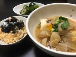 炊きこみご飯に、海苔をかけるつもりが、豚汁に