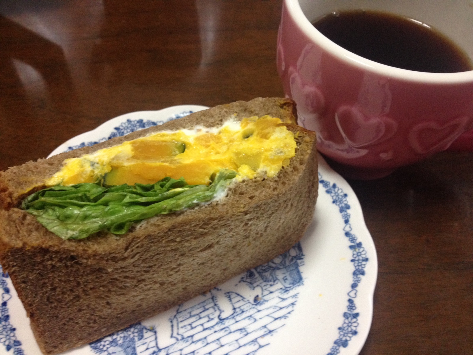 買ってきてくれたスタバのサンドを食べて…パンプキンだそう…amagai