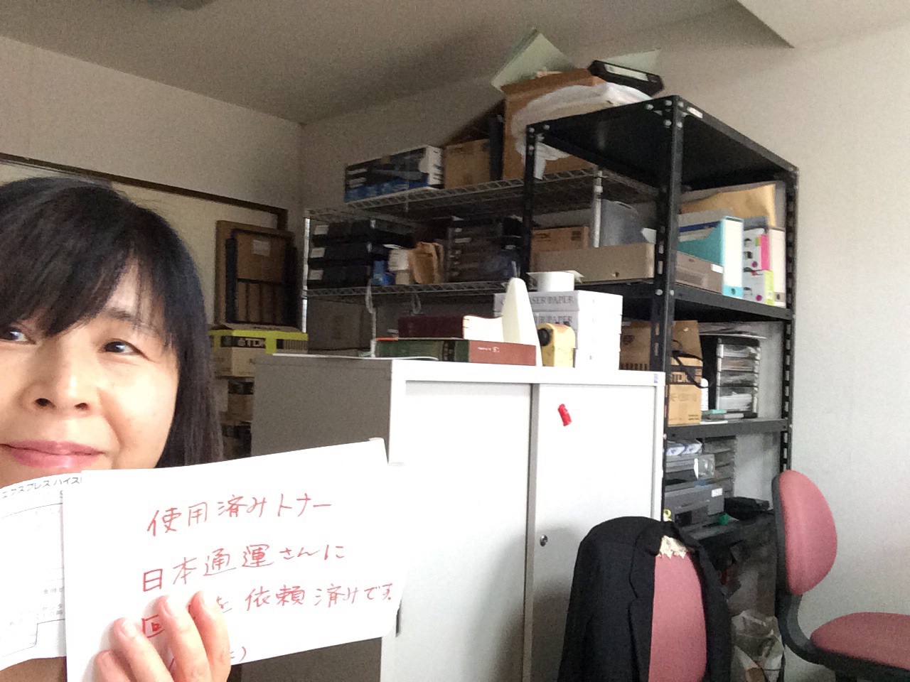 加藤さん、コピー機の古いトナーを引き取りに来られました!