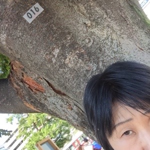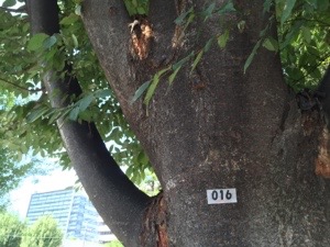 セッティングしてます。16番の欅の木の下で風にふかれます。