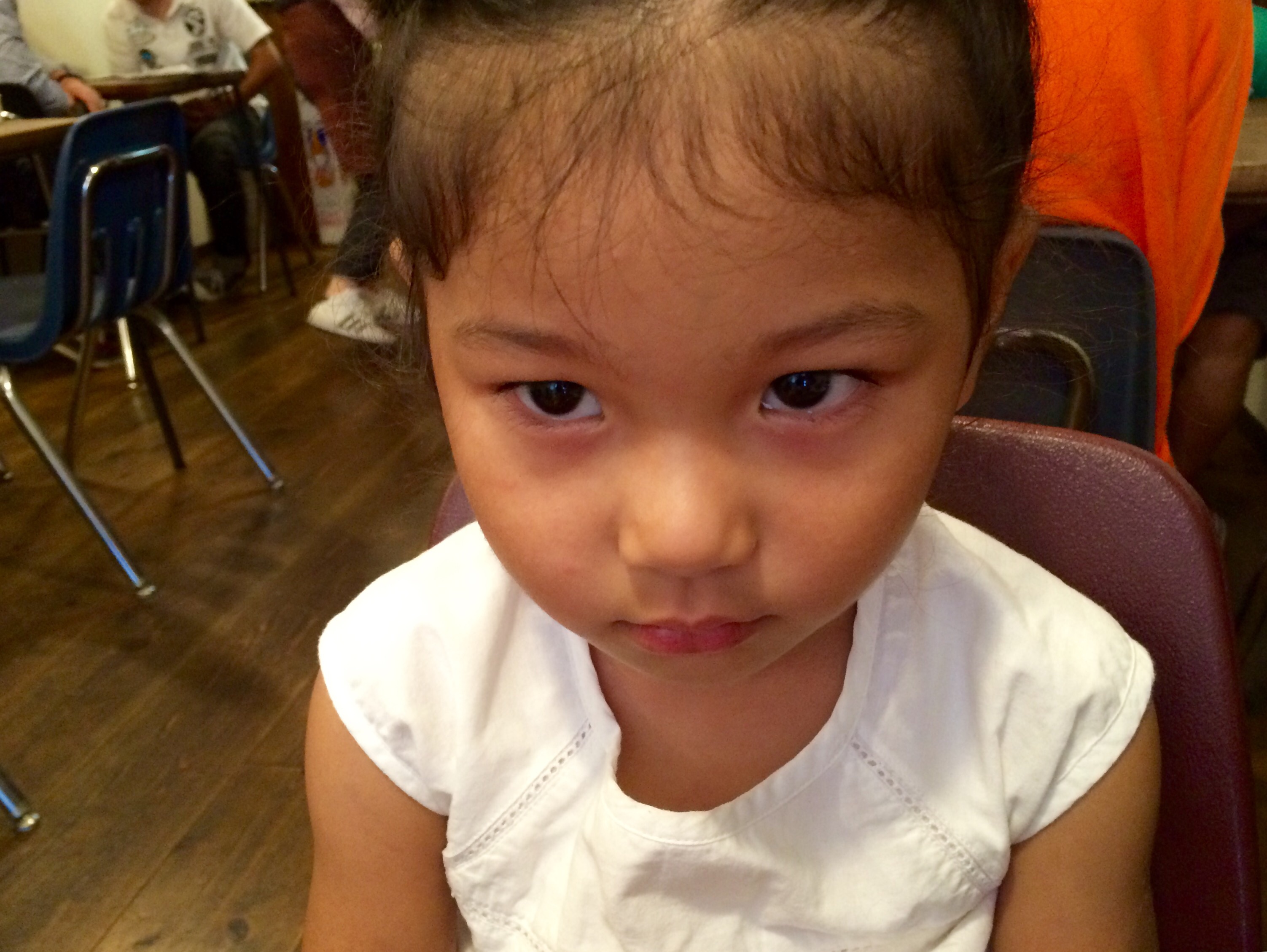 ミリアのこの顔… ジュースをこぼしてしまい、なぜか逆ギレ&いじけちゃってのこの顔(苦笑)