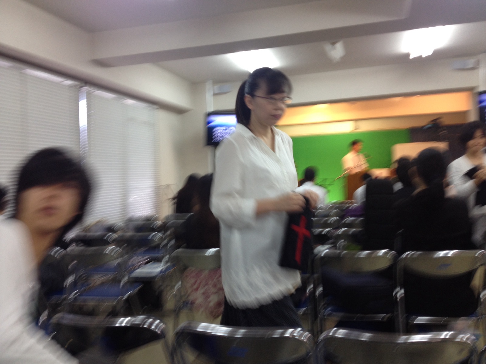 会堂に、忘れ物取りにいきます。お弁当で〜す。お
