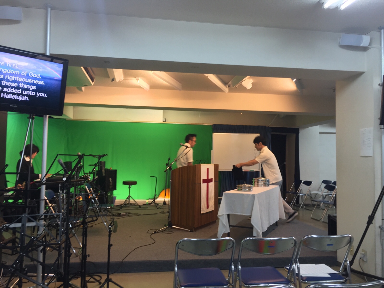 CSのご奉仕の準備をさっとされ…急いで会堂に行かれた吉田さん!お忙しそうです!