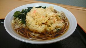 “かけそば”一杯290円。 写真は“天ぷらそば”400円。 私は七味をかなりかけて頂きます。 この写真は阿佐ヶ谷店。