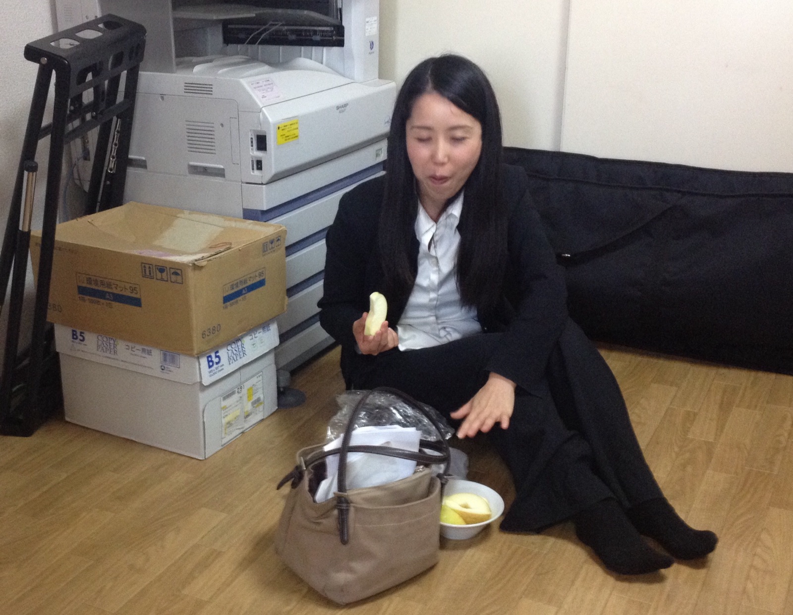 食べて…インターナショナル礼拝に向かうミカエルさん! お弁当いただいたそう…! 教会事務所にて