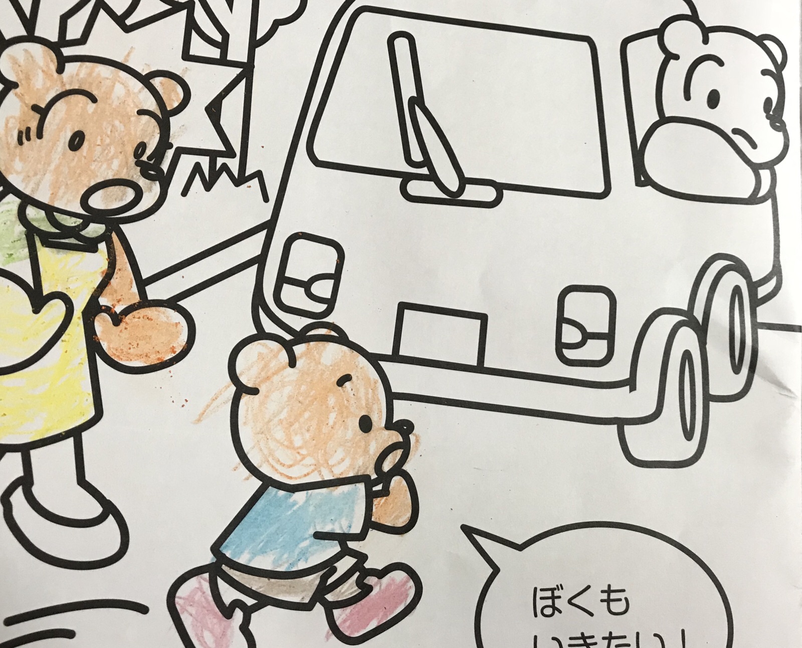今日は交通安全教室でぬりえをもらったそうです。いつか神学校の試験も受けるようになると思います。