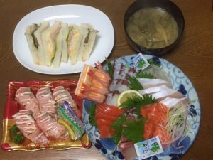 (*^-^*)のバースデーでした。 (^J^)が、お食事に行こうと・・・でも、出かけたのはいいのですが、どうしても、しんどくて・・・お店に寄って、半額になっていたので買って帰って・・家でお食事しましたぁ。(^^♪ これで、一人約500円で~す。ヽ(^。^)ノ 祝福して下さった、神さまに感謝です。 北九州 天の喜びの器ハンナ