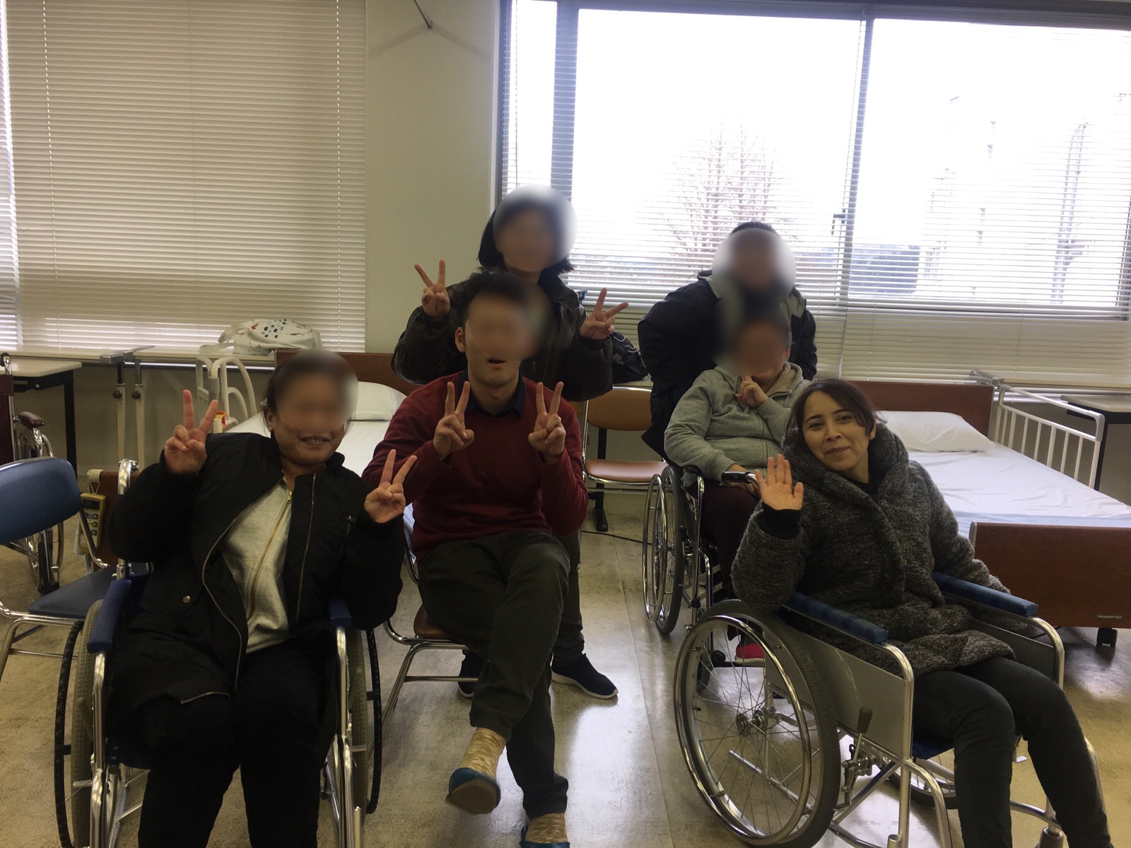 今日は、ベッド・車いす間の移乗の介助の実技しました〜(^^)/ 神学校のテストも頑張ろ〜٩( ᐛ )و 四日市 サチコ