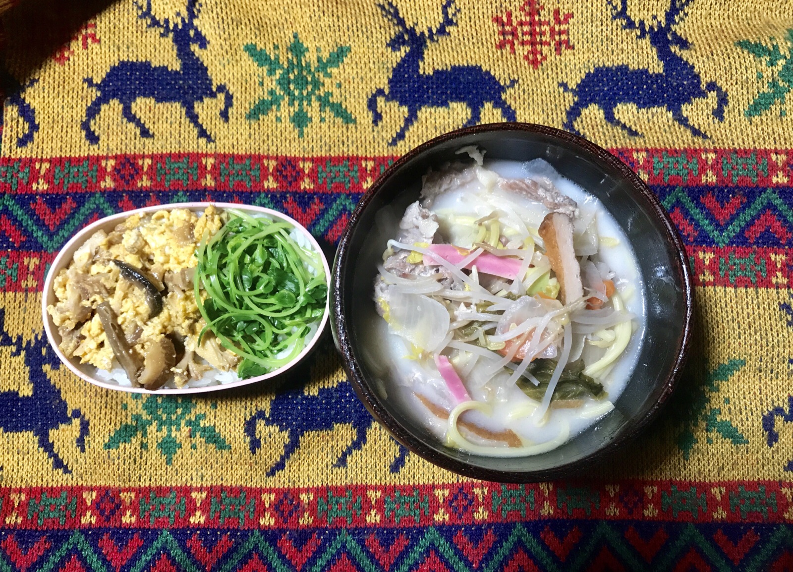 夜ご飯はちゃんぽんといただいた豚の角煮を使って三色丼を作りました😃 神のしもべ長崎教会 望🐾