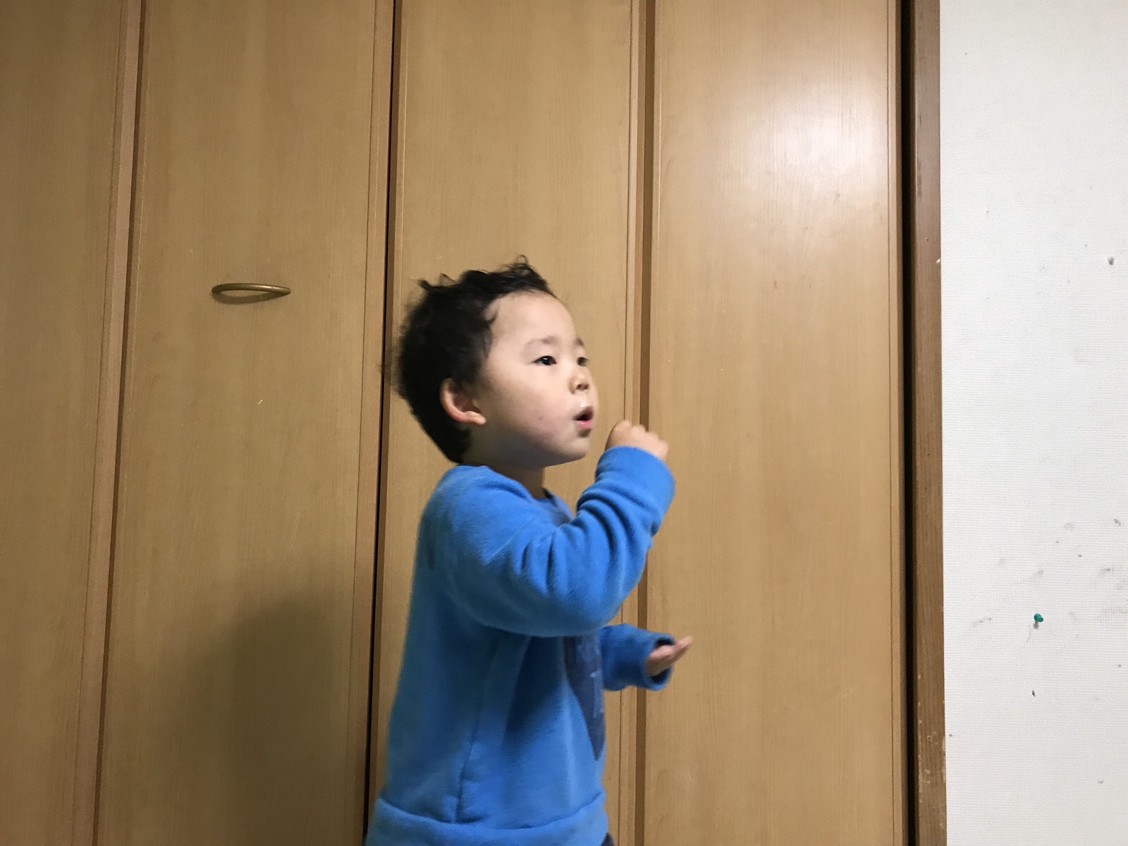 今日は、お友達とランニングをする約束だそうです。準備万端で写真では伝わりにくい首を動かすダンスをしてくれました。