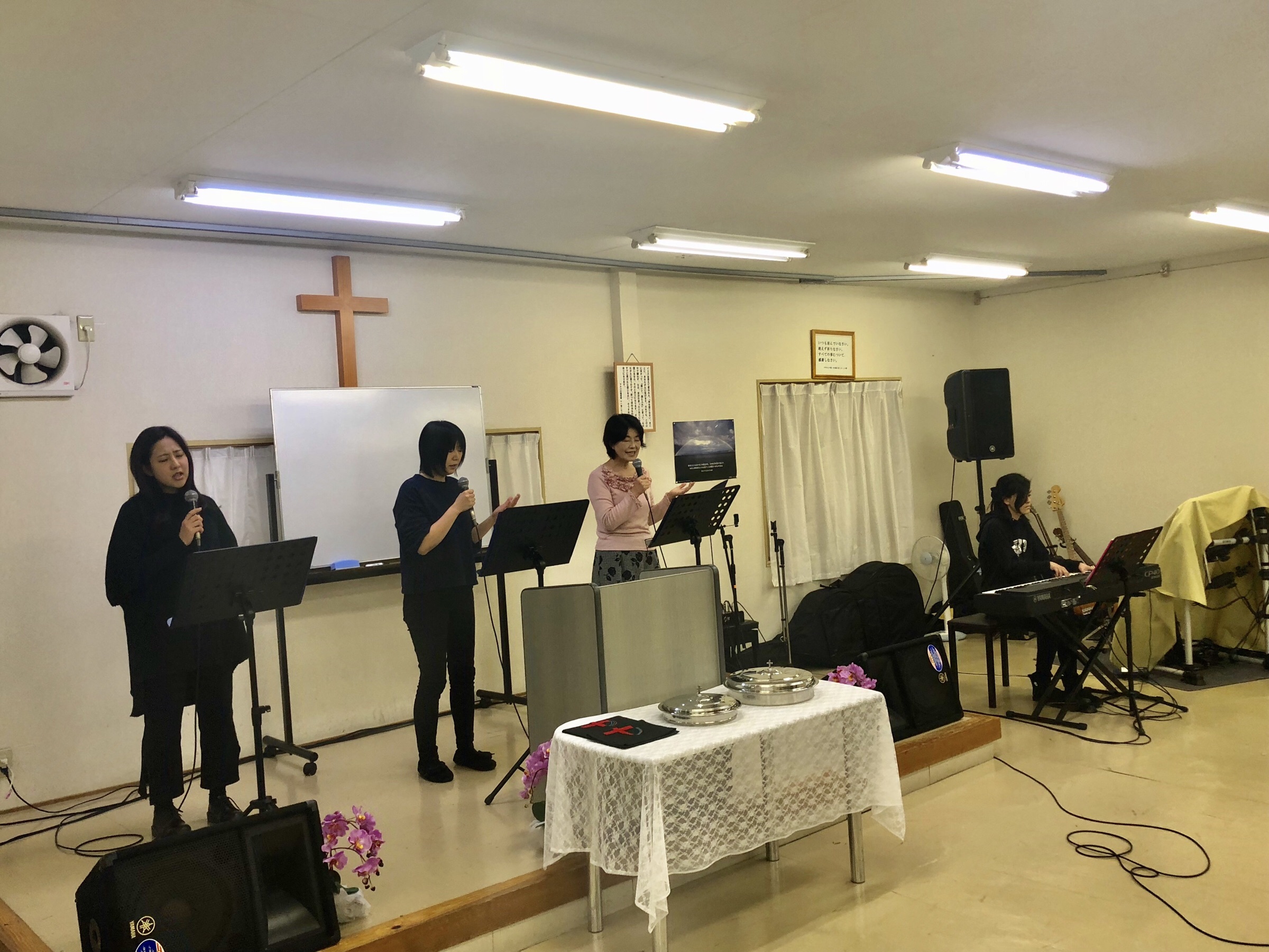 金曜礼拝が始まりました!カネザキさんの導きで、心から賛美を捧げています。