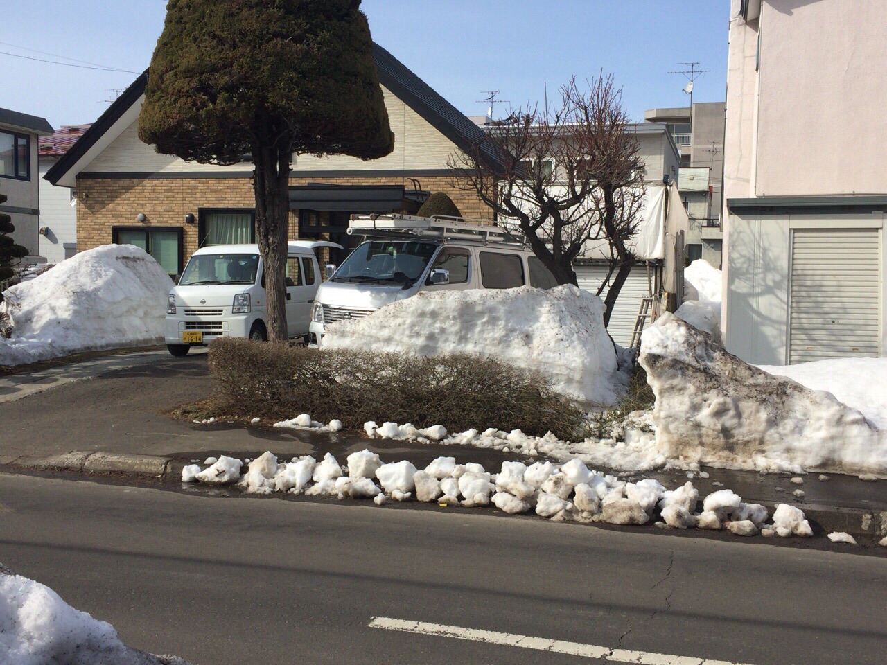 散歩中、今日は暖かかったので 雪割りをする人たち、雪の公園で遊ぶ子供たちを見かけました。桜の季節には まだかかりそうです。