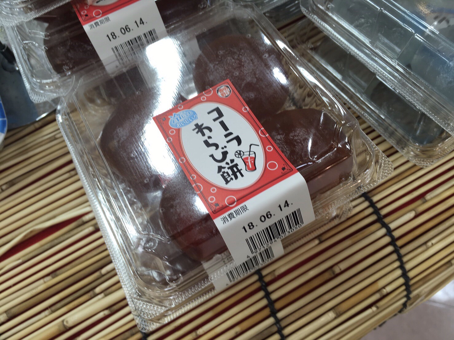 コーラ味、ラムネ味のわらび餅!今日のような暑さには、ぴったりなオヤツ。
