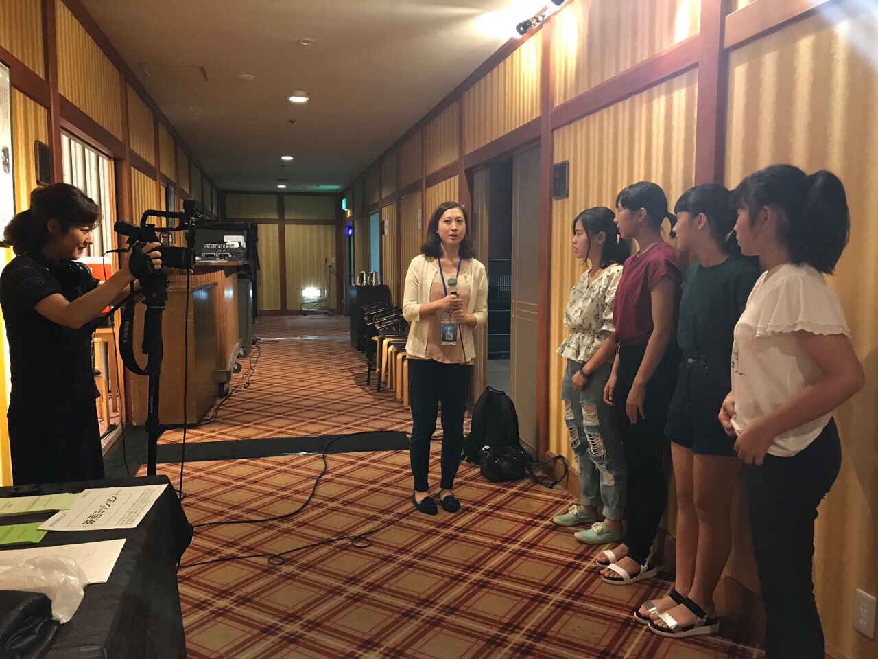 プレジール、皆さん起立ー。映像部のインタビューが始まり…