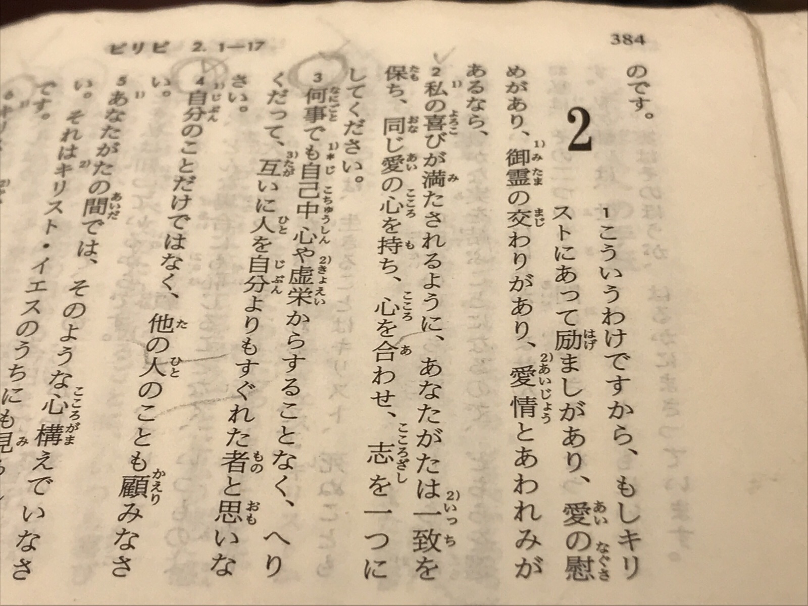 聖書箇所はピリピ2章1節〜2節から