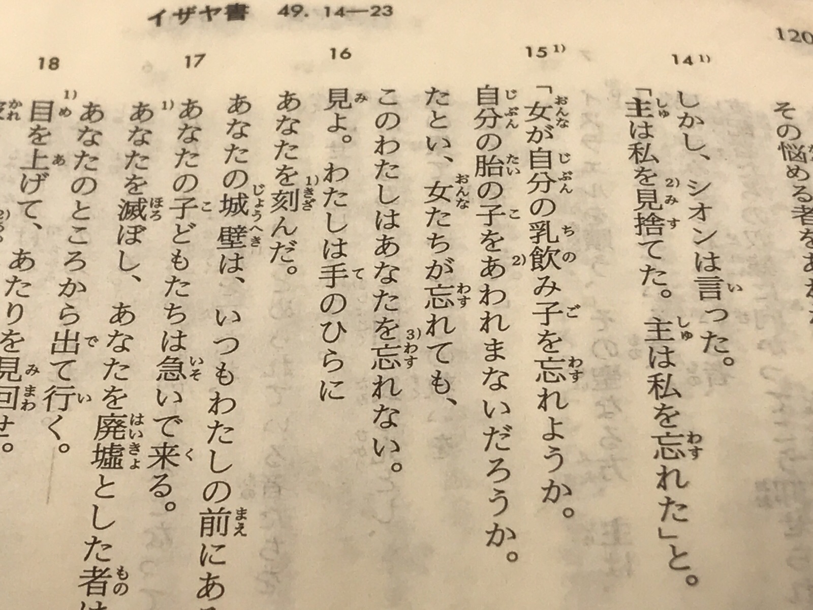 聖書箇所は49章15節から語られています。