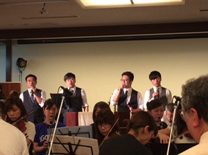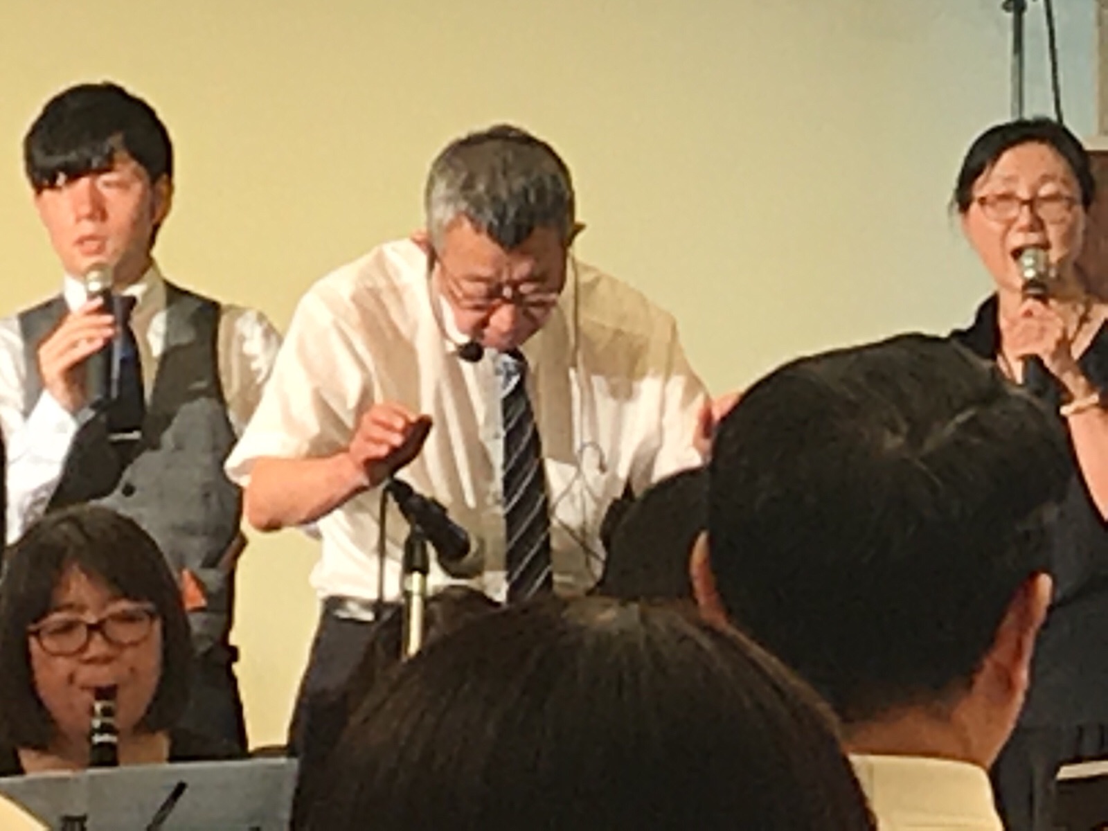 オーケストラの出番前、お祈り。