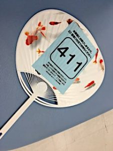 呼び出し番号の札がウチワに貼ってあります。いいアイデアですね。